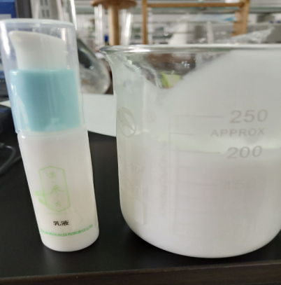 以上六种产品,均在实验室进行了中试试验,其中爽肤水、精华素、乳液、面霜、眼霜由试验阶段的200g扩大到5KG,洗面奶扩大到2KG。结果表明,小试阶段的制备工艺可用于中试生产,成型后化妆品体系稳定,外观无变化,后续可进行工业大批量生产。