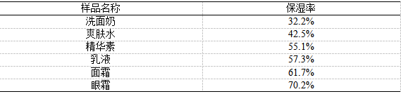 表2 人参系列化妆品的保湿率